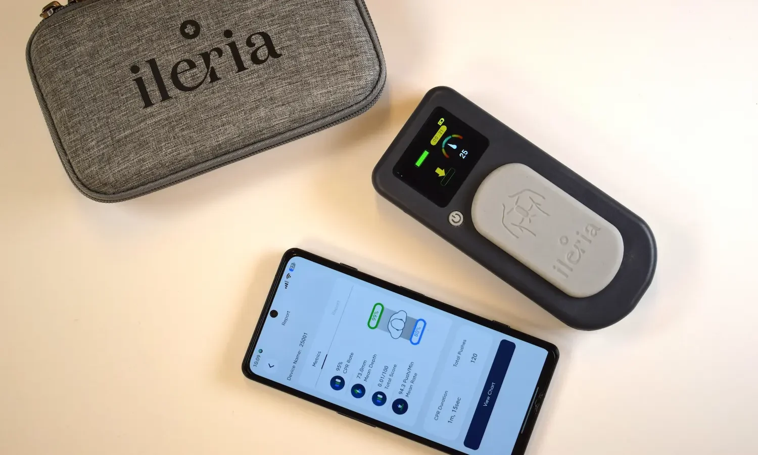 Real-time Feedback, Audio Guidance, Instructor App, Ileria AI coach, and Performance Analysis – All in one compact CPR training system